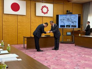 会議の席上では、事業箇所図を用いて具体的な現状を説明し、大野知事とも意見交換を行いました。知事には、本道路の重要性を改めて深く認識していただき、前向きな議論ができたと感じております。