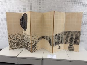 • 独創的な表現力: 特に目を引いたのは、抽象的ながらも人間の情感や自然の力を感じさせる作品群です。棟方志功氏に「絵を勉強した人はこんな絵は描けない」と絶賛されたというエピソードにも納得の、既存の枠に囚われない自由な発想が作品全体から溢れていました。