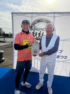 日頃から運動を心がけていますが、昨年に引き続き10kmの部に挑戦。体は正直に「重い」と感じましたが、なんとか目標としていた50分切りを達成し、49分42秒という記録で無事に完走することができました。順位は25位と、大変光栄な結果です。