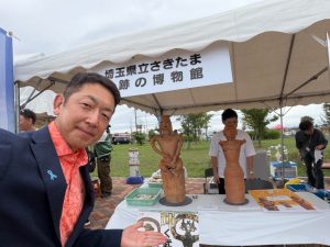 会場内では、埼玉県立さきたま史跡の博物館のブースで埴輪のレプリカなどを見て古代のロマンに触れたり、ミニチュアホースの「エジマル」とのふれあい体験で目を輝かせる子供たちの笑顔に接したりと、イベントが地域交流と学びの場となっていることを実感しました。