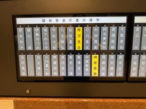 ここに自分の名前が「点灯」する瞬間を見ると、議員としての責任の重さと、託された使命に対し、改めて身の引き締まる思いがいたします。