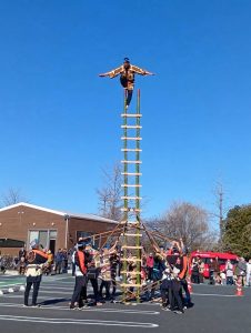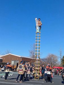 真っ青な空に高く伸びた梯子の上で繰り広げられる伝統技の数々に、会場からは大きな拍手が送られました。地域の伝統文化がこうして受け継がれていることに感動いたしました。