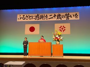 二十歳代表の岡本 莉央さんによる「二十歳の主張」も、堂々としており、感謝と決意に満ちた素晴らしいスピーチでした。
